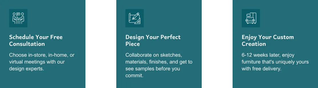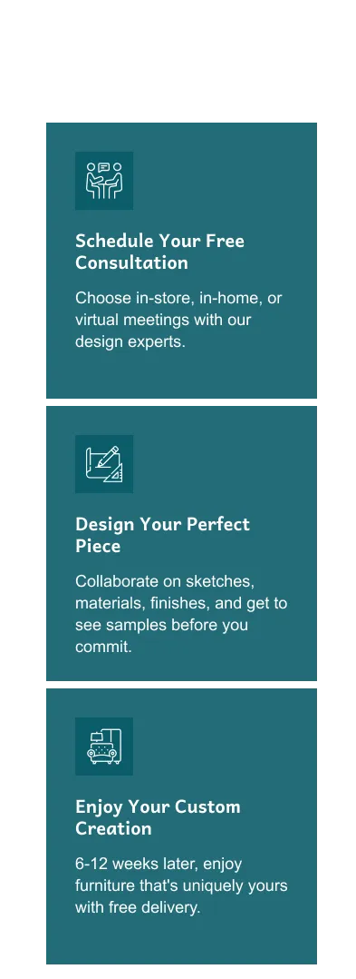 Delivered in 6–12 Weeks: We get you custom furniture without the usual 3-month wait.